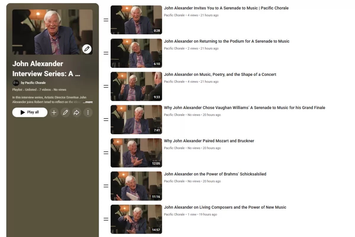 Across these conversations, John shares why he returned to the podium, how he shaped the arc of the program, and what draws him to music by composers from Vaughan Williams, Mozart, Bruckner, and Brahms to Lili Boulanger, Frank Ticheli, and Jake Heggie. Along the way, he reflects on poetry, live performance, musical legacy, living composers, and the enduring power of music to shape our lives.